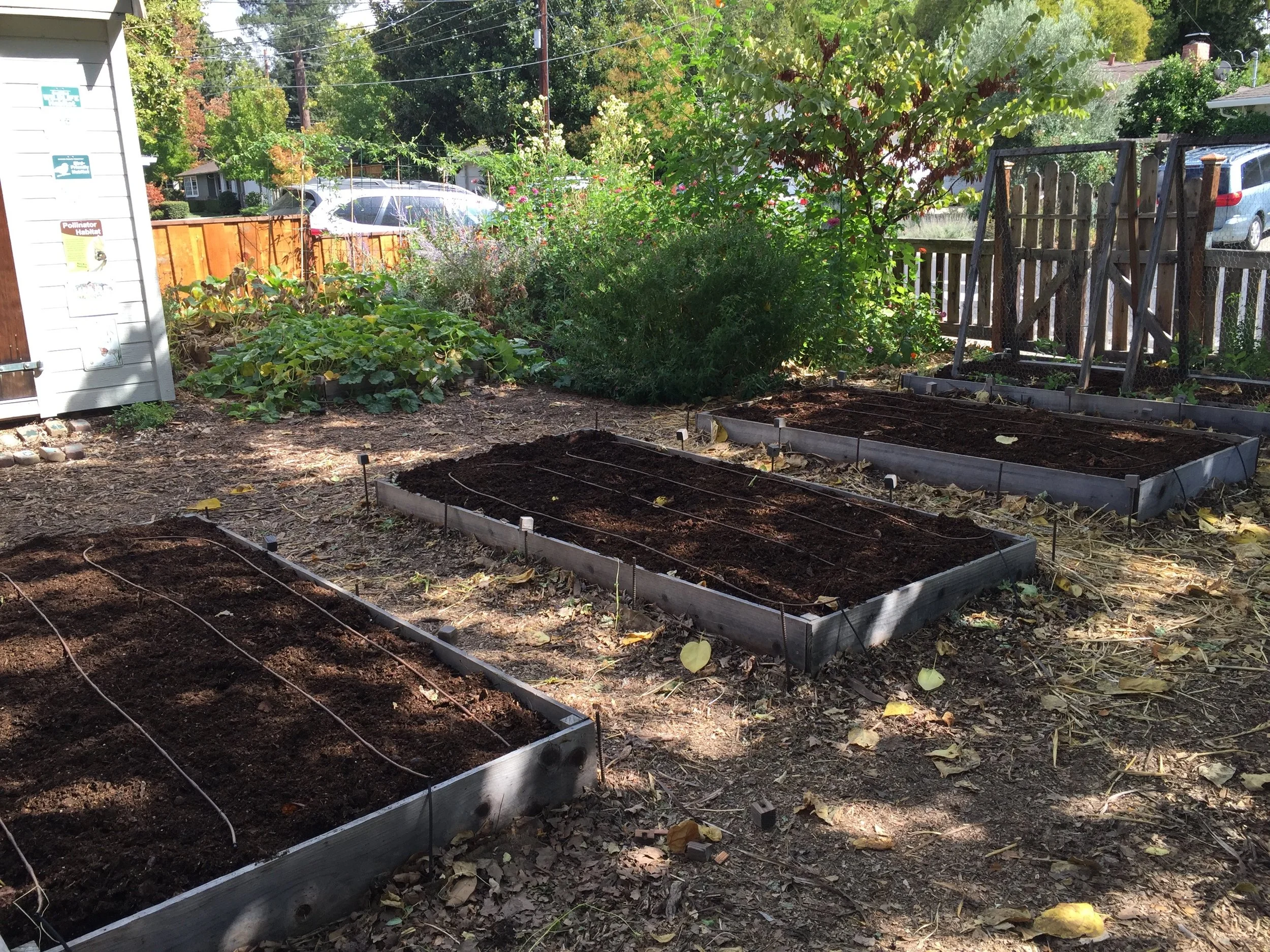 As for compost, I have found it’s very difficult to make any finished compost in the summer here. Without rain, the compost piles don’t stay sufficiently wet enough for decomposition, and using municipal water has its drawbacks; namely, the chloramines used to keep the water safe for drinking, do not off-gas and therefore kill soil life. (This is an issue with our drip system as well, and it’s a frustrating problem that has no cheap or easy solution.) And of course the composting process relies on plentiful microbiology, so killing it with our municipal water defeats the purpose. All this to say, in the fall I have to buy the compost I need to top off all the planting beds.